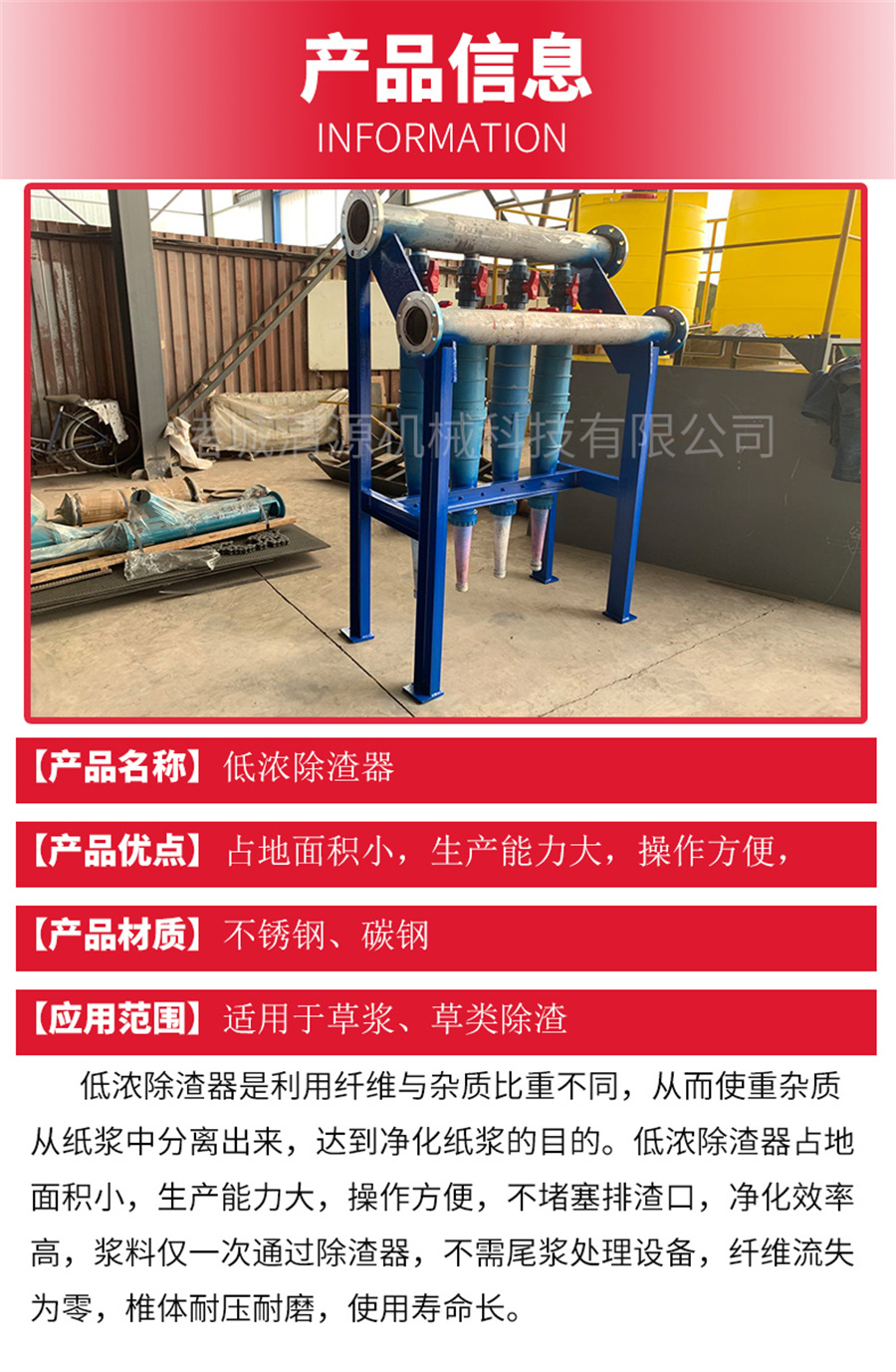 概述:ZDC系列雙錐低濃除渣器是利用纖維與雜質(zhì)比重不同,從而使重雜質(zhì)從紙漿中分離出來(lái),達(dá)到凈化紙漿的目的。低濃除渣器占地面積小,生產(chǎn)能力大,操作方便,不堵塞排渣口,凈化效率高,漿料僅一次通過(guò)除渣器,不需尾漿處理設(shè)備,纖維流失為零,椎體耐壓耐磨,使用壽命長(zhǎng)。