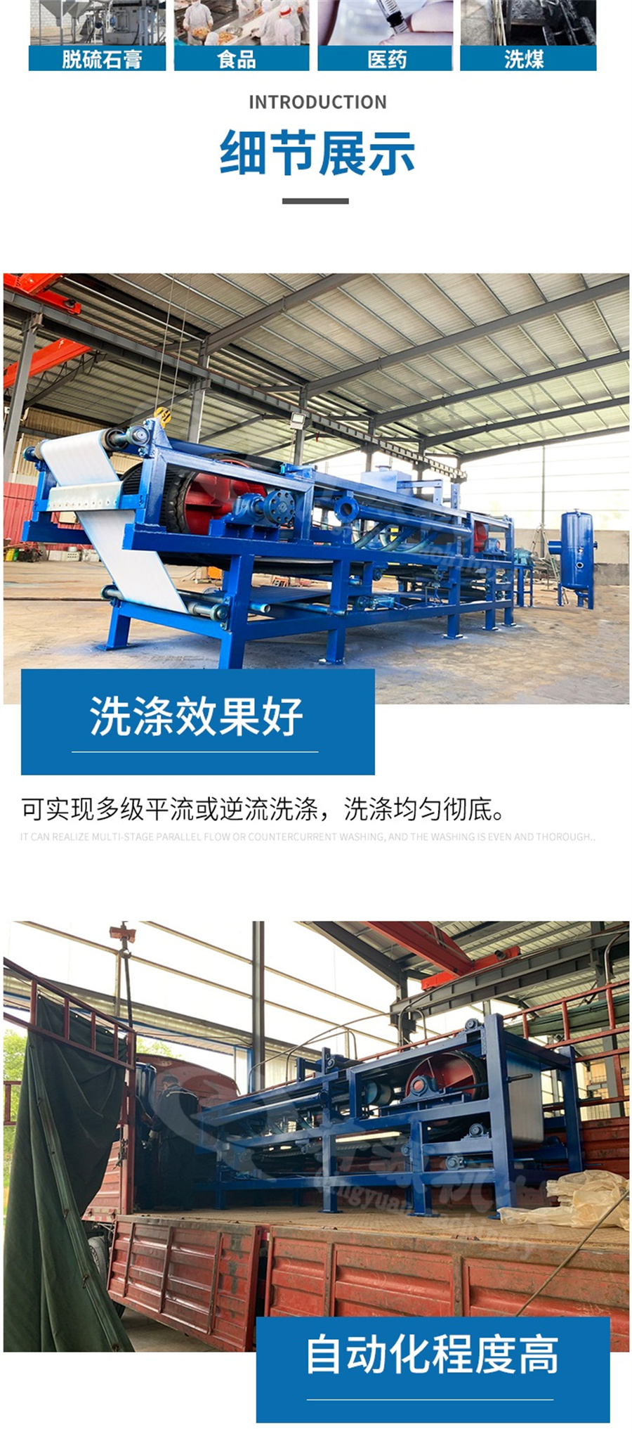1: 自動化程度高;下料. 過濾. 洗滌. 脫渣. 濾布清洗均為連續(xù)自動化,提高生產(chǎn) 效率降低運行成本,更好地減輕工人勞動強度,改善工作環(huán)境。