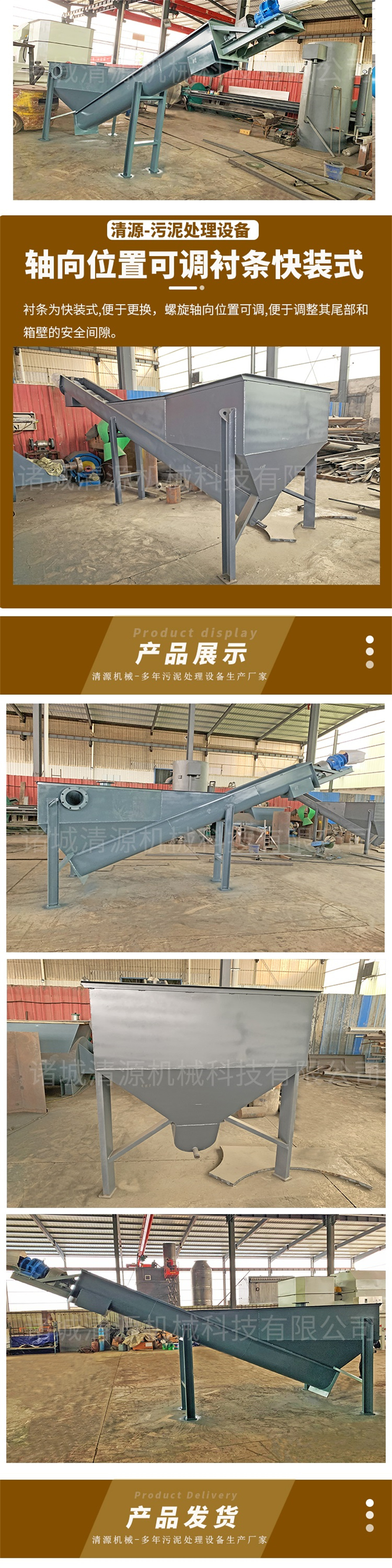 砂水分離器適用于污水處理廠(站)的沉砂池,是污水處理中處理砂水混合液的設(shè)備。砂水混合液從砂水分離器一端頂部輸入水箱,混合液中類(lèi)似于砂粒等比重較大的雜質(zhì)沉積于槽形底部,在螺旋葉片的推動(dòng)下。砂粒沿斜置的U型槽底提升,離開(kāi)液面后繼續(xù)推移一段距離,在砂粒充分脫水后經(jīng)排砂口卸至盛砂桶,而與砂分離的水則從溢流口排出,達(dá)到砂水分離的目的。另外,砂水分離器進(jìn)水口處還可設(shè)置一圓筒式旋流預(yù)分離器,污水沿圓筒切線方向進(jìn)入渦流使砂粒下沉進(jìn)入螺旋分離器,溢流液回沉砂池或格柵井,起到預(yù)沉砂及調(diào)節(jié)水量的作用,提高砂水分離器的分離效果。