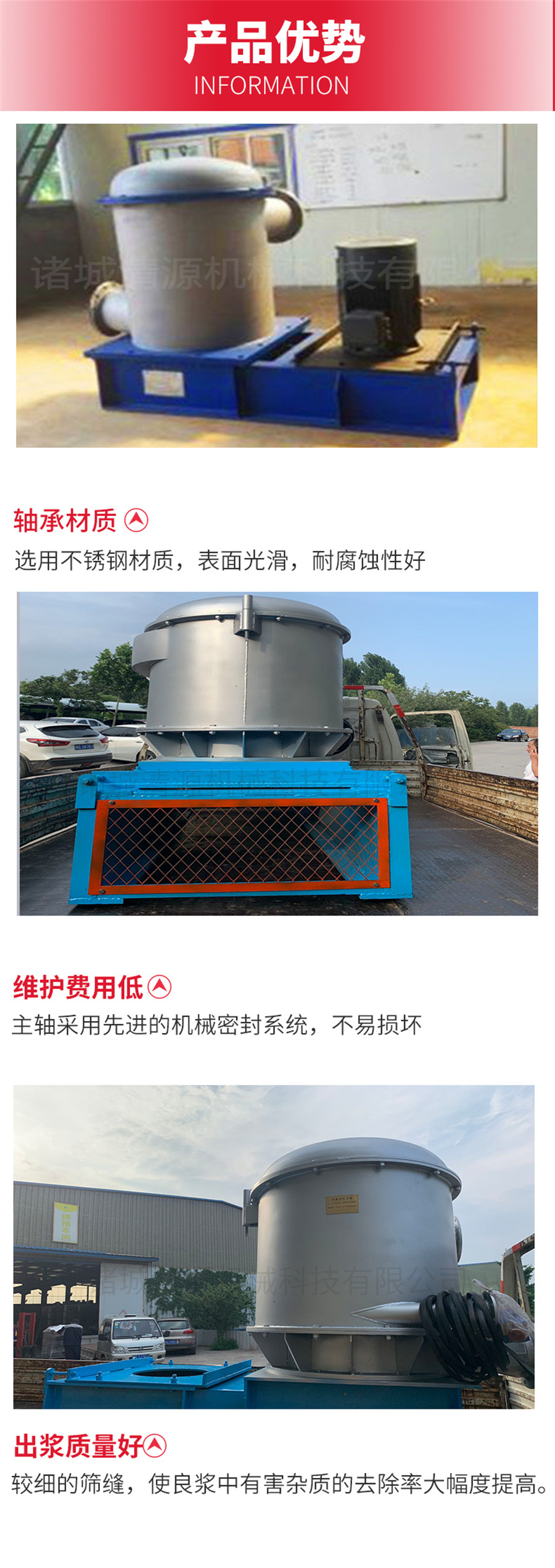 3、篩漿時(shí)不堵塞:紙漿自上而下均勻篩選,幾乎沒(méi)有增稠現(xiàn)象,雜質(zhì)始終遠(yuǎn)離篩鼓,所以篩鼓縫不易被堵塞。