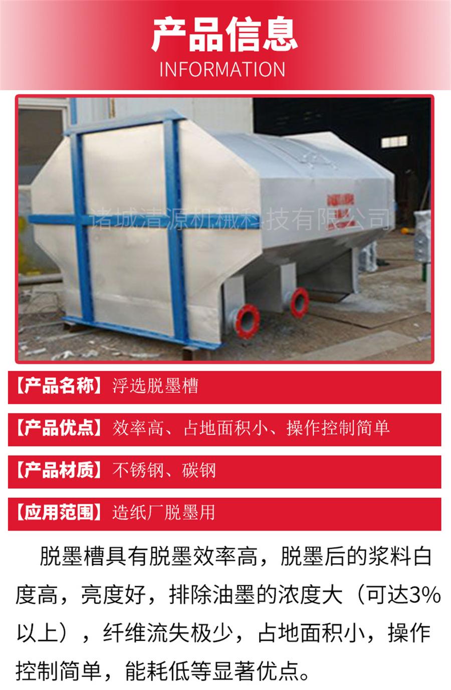 此外,我公司不僅生產(chǎn)脫墨槽,還生產(chǎn)浮選機組、地埋式污水處理設(shè)備、氣浮機、污泥壓濾機、造紙設(shè)備等其他設(shè)備,歡迎咨詢訂購!