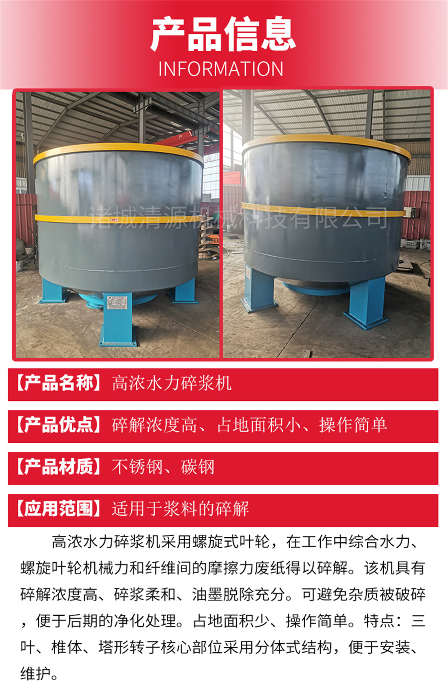 此外,我公司不僅生產(chǎn)高濃水力碎漿機,還生產(chǎn)低濃除渣器、地埋式污水處理設(shè)備、氣浮機、污泥壓濾機、固液分離設(shè)備、造紙設(shè)備等其他設(shè)備,歡迎咨詢訂購!